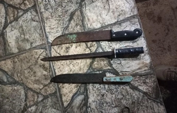 Conforme a guarnição, o homem apresentava sinais visíveis de embriaguez e optou por não se manifestar sobre os fatos. Durante buscas realizadas na residência do acusado, os policiais localizaram e apreenderam um facão, uma adaga e uma faca, que estavam sobre o sofá e a cama da casa.