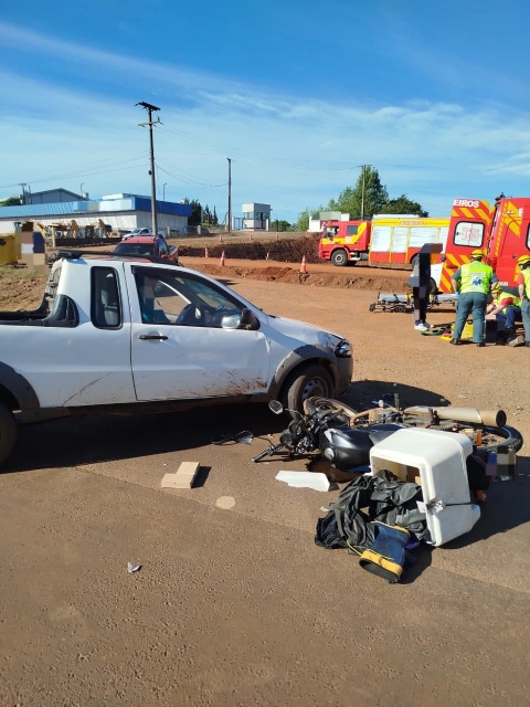 Na quarta-feira (11), um acidente de trânsito na BR-282, em Maravilha, mobilizou as equipes de socorro para atendimento de uma vítima. A colisão entre uma motocicleta Honda CG e um veículo Fiat Strada foi registrada no trevo de acesso secundário de Maravilha, junto ao Bairro Industrial.