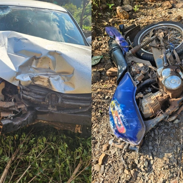 O caso foi registrado por volta das 15h, na linha Pedra Branca, e envolveu um veículo VW/Golf e uma motocicleta Honda/CG, que ficou destruída com o impacto, chegando a partir ao meio.