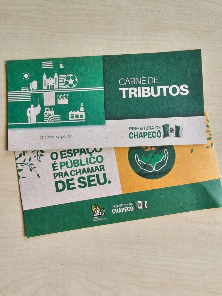 Contribuintes terão descontos para pagamento antecipado e poderão retirar boletos em pontos físicos ou pela internet. - Foto: Prefeitura de Chapecó